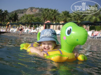 Привет всем кто отдыхал в этом отеле и кто только собирается (думает). Нам с мужем отель очень понравился. Хотим особенно отметить персонал, а именно аниматора Ксюшу (зажигала, заряжала своей энергией всех туристов), бармена Уфука (просто очень приятный человек) и менеджера отеля Дуана (очень хороший и грамотный управляющий, добрый и щедрый, умный и порядочный). Ухоженная и очень озелененная территория. Ездили с ребенком 2,5 года. Он в восторге от горок и качелей (детского уголка).В отеле очень много детей. Бассейны правда очень хлорированы, но в общем все мы едем на море и поэтому это не сильно то и напрягало. Еда.....ну если не сильно придираться, то все даже очень вкусное и разнообразное, здесь сложно что сказать....кому что нужно скорее, меня лично устраивало обилие зелени и овощей. Мужу конечно не хватало мяса :) Очень хорошо, что на завтрак давали всегда каши и блинчики. Если уж совсем хочется разнообразия в еде, на территории отеля есть ресторан, в котором можно заказать и морепродукты и мясо на любой вкус (ну кроме свинины :) ) С номером нам повезло, дали хороший,на втором этаже, большой с видом на море и в тихом корпусе ( у бассейна, где нет вечерней программы), но тут конечно не угадаешь....номера разные. Аниматоры в течении дня проводят разные программы - аквааэробика, аэробика на пирсе, мужики в водное поло играли, в соседнем отеле в волейбол можно поиграть. Для тех кто любит позаниматься спортом, есть чем себя занять. За пределами отеля ходить особо некуда, в любой более менее развитое туристическое место надо ехать, хотя и недолго. В самом Кемере есть где погулять и побродить, много магазинчиков, кафешек. Недалеко от отеля (200м) хорошие картинги. В общем на самом деле как настроишься на отдых, так наверное его и проведешь. Всегда можно придраться ко всему, но зачем искать недостатки в чем либо, если эту энергию и время можно потратить на хороший отдых. Всем приятного отдыха и хороших эмоций. Рекомендую этот отель всем с маленькими детьми, молодежи здесь будет скучновато: в 22-30 весь бесплатный бар закрывается, программы заканчивается и остается только унылая дискотека для тех кто ненатанцевался.
