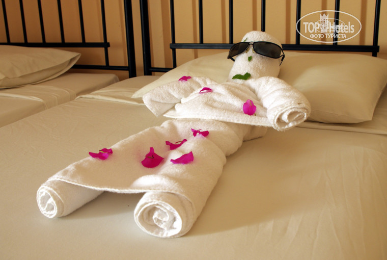 Номера: в общем неплохи, имеются кухонные зоны с плитой, раковиной, микроволновкой и т.д. (так и не понял зачем!?) Некое отсутствие уюта из-за кованной мебели. Уборка, смена белья ежедневная - стабильно, полотенца по желанию... Внимание, мини бар платный и по выезду заполненность проверяют! Есть одна проблема и она с холодной водой, её просто зачастую нет, а принимать душ в кипятке как-то не интересно. Троекратное обращение к Гест Релейшен и на Ресепшн результатов не принесли...