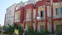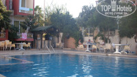 Далее непосредственно об отеле.Он маленький, но уютный.Все наши тусы происходили за территорией отеля.Всего около 70 номеров.На территории растут банановые пальмы, гранатовые деревья, различная экзотическая зелень :) Очень приятно завтракать, обедать и ужинать в таком минисаду.Расположение хорошее: от центральной улицы (Лиман) 5 минут, до городского пляжа минут 15, до дискотек "Аура", "Инферно" и "Крист." минут 20.Цо самого центра Кемера (башня с часами) также минут 15.