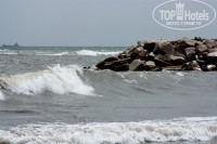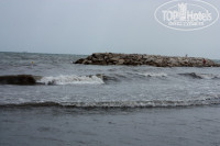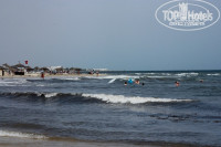 Пляж нас немного разочаровал. Много водорослей, да и море в этот период было неспокойным.
