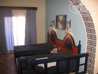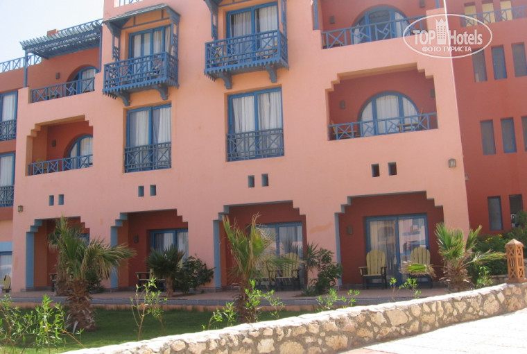 5. Пляж. Можно купаться в большом центральном бассейне, там по утрам "гонят волну", есть сетка для волейбола. Но на территории отеля одолевают мухи, да и вода холодновата. Пляж в 5 минутах, даже хорошо прогуляться лишний раз. Его постоянно убирают какие-то вялые личности, в общем, не грязный, но и не ухоженный, много лежаков, две голубые кабинки, олицетворяющие "удобства", всегда были закрыты. На пляж привозят воду-колу-пиво, ребята-арабы наливают по пол-стакана, так что берите сразу пару. Левее, за хижиной бедуинов, есть кораллы, там осторожнее- под каждым камнем семейка ежей, без обуви лезть не советую, но зато там море намного спокойнее. Также можно купаться в небольших бассейнах ( ближе ко мне) и загорать там же рядышком- на лежаке возле бассейна или под тентом в беседке.