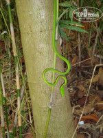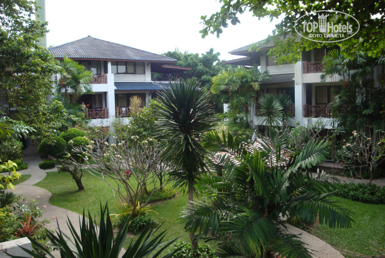 После того как покидаешь здание аэропорта понимаешь что такое влажность (аж дыхание перехватывает) но яркие такси пафосные автобусы и улыбчивые тайцы моментально настраивают вас на положительные эмоции. Все воспоминания о не совсем удачном полете ушли на второй план, и вот мы погрузившись в автобус выезжаем в отель. После почти суток пути (с учетом взлетов и посадок) мы десантировались в отеле. Номер достался не айс на первом этаже (мы молоды и не хотелось бы что бы окна были так низко )))) однако на следующий день нас переселили причем предоставив право выбора блока и этажа. Мне показалось, что на первом этаже состояние номеров похуже, сырость здесь ощущается сильнее, да и на стенах ванной комнаты гораздо больше следов ее присутствия. Знакомых поселили в тайский домик там номер приятнее, ванная заметно лучше, однако именно рядом с этими номерами жили местные кошки которые ночью любили по мяукать. Вообще в отеле номера не новые, но убитыми их назвать не нельзя. В этом отеле есть огромный ПЛЮС утром поют птички, по зданиям носятся маленькие гекончики, одним словом NATURAL PARK! В некоторых отзывах встречается упоминание о номерах с туалетом на две комнаты я так понимаю это номера Standard Bungalow, хотя пока жили в отеле похожих жалоб не слышали. Прогулявшись по территории немного разочаровался, она оказалась не такой большой как мы себе представляли но уютной и достаточно озелененной. Множество деревьев, кустарников, цветов… КРАСОТА… Потом заглядывая в другие отели поняли что мы угадали на все 5, в Таиланде все трешки которые нам встречались с небольшой территорией. Есть минус в том, что местные тук-туки не любят доезжать до нашего отеля, и вы вынуждены либо доплатить 15 бат (он практически равен рублю) на человека либо прогуляться около 600 метров, но преодолевали мы это расстояние без труда (не более 15 минут).