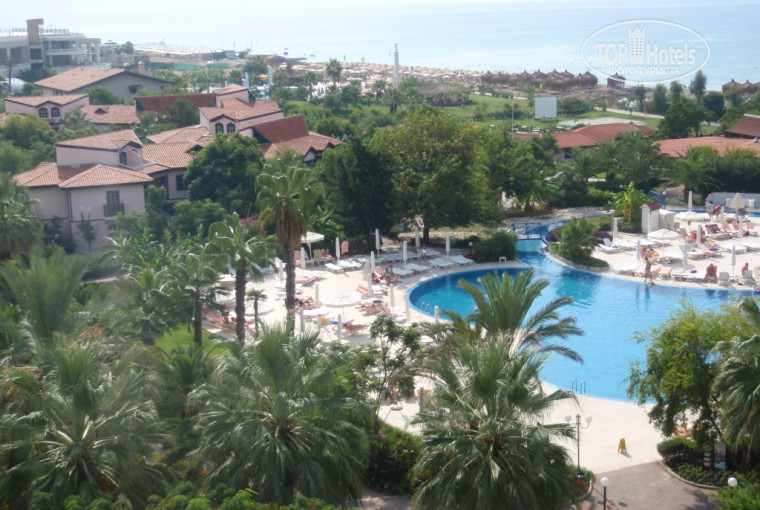 В отель… Приехали мы раньше принятого времени для заселения, но проблем с этим не возникло. Нас тут же заселили в бунгало дуплекс и предложили пойти пообедать в ресторан. Наш бунгало располагался очень удачно, недалеко от главного корпуса, с видом из окна на бассейн, рядом с аквапарком. Мебель в номере хорошая, вся техника исправна. Единственным минусом была небольшая ванная комната с совместным туалетом, так как в бунгало нас отдыхало четверо взрослых и один ребенок, то конечно было немного неудобно. Ну а в целом все было отлично. Номер убирают каждый день. Убирают довольно чисто, полотенца меняют каждый день. Обслуживающий персонал просто молодцы! Поскольку мы отдыхаем там уже не впервые, то нам в этот же день принесли корзину с фруктами, местное вино и конверт с пожеланиями прекрасного отдыха. Вдобавок мы получили приглашение на бесплатное посещение турецкого ресторана, а также приглашение на фуршет на пирсе для всей семьи и друзей. Территория отеля с первого же взгляда вызывает восхищение! На территории много зелени. Постоянно все поливается, вокруг чисто! Персонал в отеле трудится как пчелки. На территории растут бананы, гранаты, лимоны, мандарины, апельсины, кактусы, алоэ, финики, фикусы…! Цветов просто море! Еще один, немаловажный плюс, на территории находится два отеля Санрайз и Старлайт. Вы можете пользоваться территорией и услугами обоих отелей, за исключением VIP бассейна и VIP ресторана в Старлайт. Можно бесплатно посетить очень красивый хамам в Старлайт. Сам же Санрайз бесплатно предоставляет финскую и римскую (из теплой мраморной плитки) сауны. Аквапарк просто замечательный! Подходит как для взрослых, так и для детей, а главное он безопасен и за все время нашего отдыха ни одного происшествия. Рядом с аквапарком находится мини-клуб. Аниматоры очень доброжелательные, активно занимаются детьми (всевозможные игры, мультики, рисунки, выпечка печенья, детская дискотека, разнообразные конкурсы). Рядом с мини-клубом находятся конюшни и можно посмотреть лошадок, погладить, покормить, и при желании можно покататься за небольшую плату.