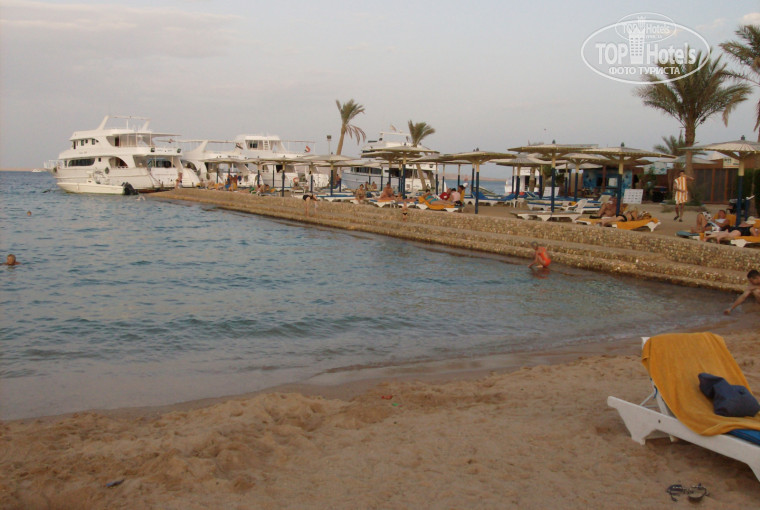 Отдыхала в этом отеле с 15-29 октября.Сразу скажу, что отель очень понравился. отель большой состоит из 3 корпусов, мы жили в старом корпусе в номер 1348.Очень удобно, рядом лифт, близко к ресторану и рецепшену.Номер огромный две кровати диван, два креслица, телевизор, шкаф в нем сейф(бесплатно), тумбы три штуки.Балкона не было,но окно большое и все мокрое белье вешали на решотку за окном.Наши окна выходили на внутренний дворик с босейном, но он всегда пустовал( наверное из за холодной воды, хотя холодные басейны-везде в отелях Египта(странно конечно).Убирали номер средненько, плотенца миняли каждый день и кровати заправляли, муср вынесут ну и все.Пляжей у отеля три, каждый возле своего корпуса, возле нашего старого корпуса была лагуна (типа лягушатника)удобная для детишек.Но мы ходили на пляж в новый корпус.Лижаков хватало всем, много было пустых и в 9утра можно было занять возле моря, а не на галерке.Пляж убирался всегда, рабочие гребли водоросли выброшенные на берег каждое утро, вытирали столики пляжные и гребли все как пчелки.Вобще надо сказать персонал целый день все мыл и чистел, подметал.Заход в море удобный, спецобувь не нужна, есть пару камней в море на них чуть-чуть коралов и очень интересно посмотреть с маской на рыбок. Рестораны их тоже три, мы побывалди везде.Завтрокали у себя в старом ресторане, еды полно,картошка , сосильки, омлет, йогурты,фруктовые салаты,сыры, овощи(помидоры, огурцы, капуста белая и красная, перец) выпечка-это отдельная песня, курасаны-тают во рту.В обед в старом корпусе в ресторане подают фас-фуд, который делают на улице.Это пица, картошка фри, всякие гамбургиры и т.д.Мы с друзьями начали ходить в ресторан в отель Премиум.Там полноценные обеды с супом(всегда очень вкусные супчики протертое пюре и обычные), мясо, рыба, курица, индейка-всегда что нибудь было.Салаты, выпечка, торты.Фрукты, обалденные грейфрукты, яблоки, груша,гуава,финики, виноград, бананы чищенные и политы шоколадным соусом.Ужин такая же обжираловка.В баре наливали все, очереди практически нет, а в Премиуме официанты сами приносят заказанные тобой напитки.Пиво не плохое(бывало и бутылочное пиво), брали джин с тоником(тоник баночный, хороший) и коктели всякие делал бармен.В заключении об питании ни чего плохого сказать не могу, ни кто не отравился, столы убирали моментально, грязные тарелки ни у кого на столе не стояли,салфетки все чистенькие беленькие, персонал весь доброжелательный.Анимация средняя, но видно люди стараються.Устраивают всякие мероприятия вроде водного пола, водной аэробики,латинцких танцов, танцы живота, волейбол, футбол и т.д.Еще при отеле есть видсерфинг (платно), мы взяли пару занятий, понравилось.Ребята инструктора молодцы старались нас хоть чему нибудь научить.Еще мне понравилось, что отель находиться в центре города(хотя многие со мной не согласятся).Мы вечером выбирались в магазины на шопинг.Ходили и в Клеопатру(там фиксированные цены и продавцы не навязчивые), фрукты покупали в Клеопатре и Метро.Очень понравилось манго и не дорого.Примерно 1$ или 1,5$ за одно манго, в зависимости от сорта, желтые чуть дороже, но и вкуснее.Еще купили халву в каробочках с фисташками на подарки из Египта.Ездели на яхте.Экскурсию взяли не от гида(нам он не очень понравился), а на пляже купили за 40$.Еще я сходила на масаж, была всего три раза, т.к. поздно п