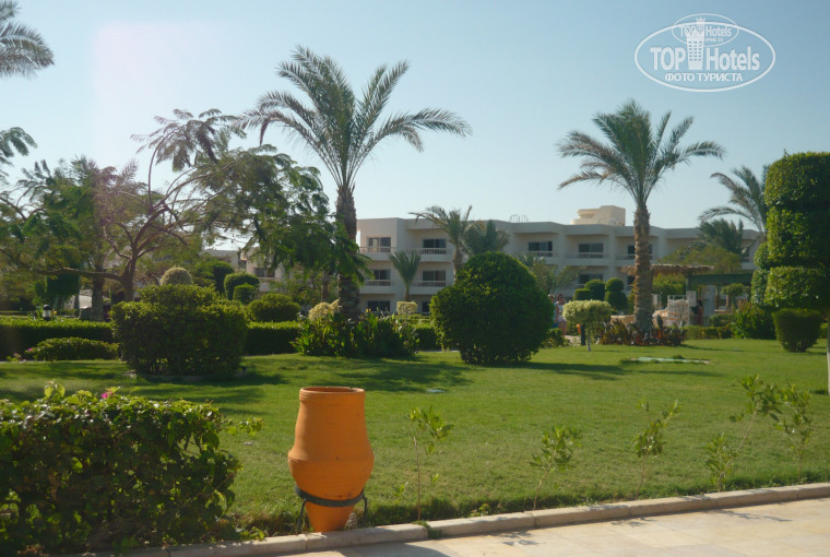 Размещение - нас заселили сначала в номер 962, 10 долларов оставленные в паспорте не взяли. В бунгало все номера примерно одинаковые, но нам не понравилось, что на первом этаже и почему-то в этом номере стены были очень тонкие, поэтому мы слышали наших соседей как-будто они у нас на кровати сидят. Не распаковывая чемоданы мы пошли просить другой номер и просили 2 этаж, нам сказали, что номеров нет, приходите завтра, единственный вариант - это есть номер 1112, но он далеко. Вообщем мы на этом варианте и остановились, так как нас не напрягали прогулки до моря и до ресепшена по 5 минут (специально засекала), а после еды наоборот полезно прогуляться. Территория большая, у главного корпуса все зеленое, много красивых растений, удивительно, что они могут сделать такую красоту в пустыни. Номер не новый, но мы не придавали этому значение, т.к. там только ночевали. В целом отдохнули хорошо, т.к. это был долгожданный отдых и практически ничто его не могло испортить. Этот отель для спокойного семейного отдыха, но не для молодежи. Есть ненавязчивая анимация (у главного бассейна), если у кого есть желание можно и на аквааэробику и на йогу и на танец живота пойти, но у мы в основном были на море, поэтому не принимали участие в этих "активити".