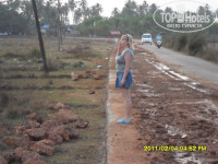 На самом деле: до аэропорта 2.50 часа езды, до пляжа 1.8 км, нету ни какой инфраструктуры, пока не спустишься на центральную дорогу, стоимость от отеля до дороги 50 рупий, но такси от отеля 100 рупий.