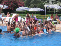 Все время в течение дня проводятся спортивные мероприятия, в т.ч. в бассейне каждый день разные соревнования и для детей, и для взрослых. Горки отличные! Лежаки ни разу мы не занимали, брали стулья (рядом с бассейном, у эстрады), оставляли на них вещи. В 17.00 закрываются горки, в 18.00 хлорируют этот бассейн, можно идти в другой, который закрывают в 19.00. Море теплое, катамаран - бесплатно, каноэ. Остальные водные развлечения - платно. Да, о лежаках. Думаю, их всегда не будет хватать. В день отъезда наблюдали такую картину с лоджии: в 5.15 (мы уезжали рано) женщина идет к бассейну, занимает полотенцами лежаки, идет к морю, там тоже оставляет на лежаках полотенца и идет в номер. Может, и у второго бассейна она заняла места по пути, не знаю. И не она одна так делает.