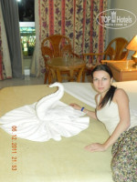 отдыхала с 3 по 12 декабря.была впервый раз в египте и вообще за границей,так что сравнивать не с чем.отдых очень понравился.Поселили в главный корпус без всяких денег,правда с видом на улицу,но это никак не смущало.питание очень хорошее,проблем с желудком не было.С уборкой правда не очень:соседка по комнате рассказала что только кровать ей заправил,а мусор не вынес и полы оставил грязные,поэтому мы сразу оставили ему 5 футнов.все убрал и сделал лебедя))))Персоналом довольна.Территория отеля красивая,зеленая,3 бассейна,правда плавать в них не получится-вода просто ледяная((((и еще расстоило холодное море и ветер,но всеравно купались.анимация хорошая.