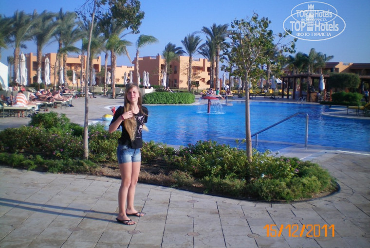 Величезний басейн посеред території. Точніше їх три – холодний, гарячий і лягушатник. В холодному вода біля 17 градусів, в гарячому – більше 30. Дуже добре було пропливти у холодному і під містком перевалитися до гарячого – як контрастні ванни. Довкола маса вільних лежаків, там же видача рушників, бар в котрому є напої, печиво і морозиво, тенісний стіл і більярд, також Дартс. Вотерпульо, із слів арабської анімейшн тім, є в басейні. На будь-які гри скандинавів підняти практично не можливо, тому ця сама анімація не дуже виснажувалася. Колегували нам у спорті більше поляки. На пляжі є волейбольний майданчик. Один раз за тиждень вдалося зіграти 4 х 4, знов таки з поляками.