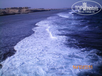 Один великий мінус зими – інколи шаленіючий вітер, який дошкуляє. Але обслуга ранком помагає вистроїти заслони з матрасів довкола лежаків – і все ОК. Але за такого вітра годі і думати купатися в морі з пірса. Він виходить у море одразу за ріфом. Хвилі, навіть невеликі, можуть кинути на ріф – далі поможе тільки лікар. Тому прапор весь час був чорний. В перший день ми бачили хвилі навіть до 4 м висотою, але вони розвивалися об риф і на пляж викочувалася плоска вода. Пізніше хвилі були до 1 м висотою і навіть майже зникли одного дня.