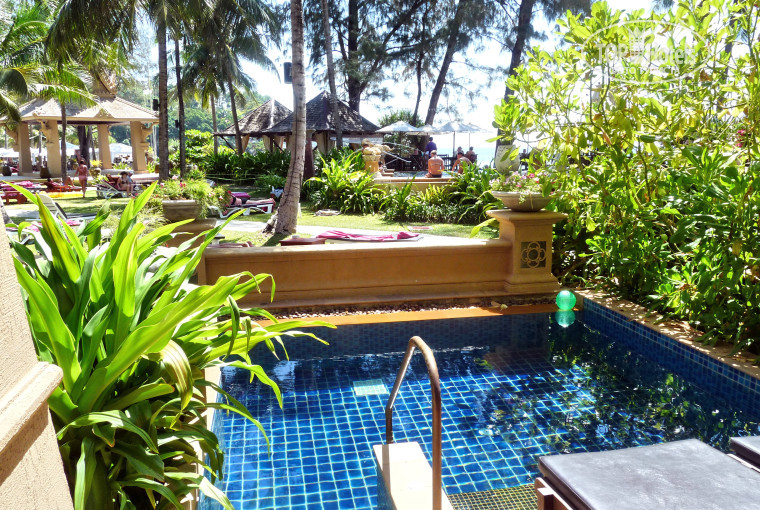 Территория отеля очень зеленая, много пальм. И вообще сказочное место. Находится прямо на берегу моря, что большая редкость для Пхукета. Дорогу переходить не надо.