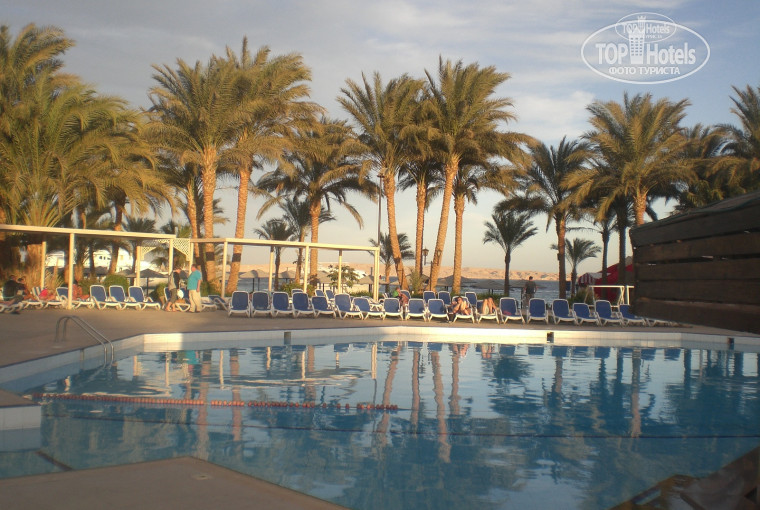 Мы отдыхали в этом отеле в новогодние каникулы. Прилетели 1го января вечером (даже успели на ужин!:) Нам все понравилось! Территория отеля сразу впечатлила красивой иллюминацией, а днем еще больше впечатлила ухоженностью и креативностью! Пальмовая роща, кактусовый огородик, детские площадки, крлики в клетках, цапли разгуливают)) Вообще очень зеленая красивая территория, смешные бедуины поливают 24 часа в сутки)))