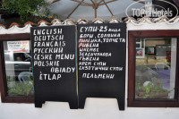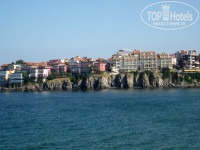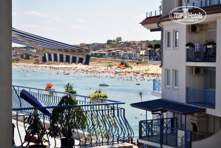 Небольшой семейный отель.Хозяйка со своей семьей живет в этом же здании.Территории своей нет практически,небольшая дорожка,обставленная цветами,вот и вся территория....Отель удачно расположен.Рядом магазины,рестораны,бары,пляж.Мы отдыхали большой компанией,занимали 3 номера..все номера были достойные.чистые.простая мебель,телевизор,кондей.Именно мы жили в апартаментах,т.е. номер был с кухней и состоял из гостиной и спальни.Большой балкон,правда вид на море был закрыт впереди стоящим отелем.Убирали каждый день,полотенца меняли,но можно было попросить поменять и вне очереди...Фена нет,утюг с глад.доской есть.....никакого ресторана мы не обнаружили в здании отеля=))это кто-то кого-то неправильно понял.....По еде..проблем поесть нет никакой..на любом углу кафешка,ресторанчик или просто закусочная,а когда дети подхватили ротавирус и мне было не выйти из номера я ужинала или рыбой жаренной,купленной на развес, или курой-гриль....Младшему сыну был 1 год,поэтому готовила ему в номере,так же на ул.Республиканской мы нашли детский небольшой магазин,где можно было купить детское питание(банки,смеси) и памперсы,еще есть супермаркет,где мы покупали каши или что-нибудь на завтрак...Красивый ,самобытный городок, небольшой,очень зеленый,есть ,где погулять,крепость,яхты......Пляж и вход в море- песок.