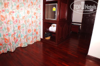 И так - мебель вся старая, стоит шкаф купе – двери все перекосило, в итоге, что бы открыть дверь, нужно обоими руками вывешивать дверь и открывать. Стены все грязные, причем не только по низу, но и по середине. Шторы весят паклей, потом муж скакал с табуреткой вешая шторы на крючки – извините, но мое личное мнение – вешать шторы обязан обслуживающий персонал, но ни как не отдыхающие. Выход на балкон – пытаясь открыть дверь я распрощалась с двумя ногтями – но сил открыть у меня так и не хватило. В итоге все время препровождения в данном номере двери на балкон открывал и закрывал муж, мне же действительно не хватало сил. Сам же балкон шикарный (по размерам) , но балкон моет только дождь ))). На балконе посажены кусты какие то – на самом деле задумка классная – но кусты поливать надо!!!! В Итоге я нашла только 2 зелененьких листочка (((. Сами стеклянные двери очень грязные – честно было желание сходить в магазин купить средства и самой все натереть. Сантехника старая – но главное работает. Не удобно не съемный душ. И после принятия душа, на полу очень много воды – натекает откуда то с низу. Скажем то же не очень приятно.