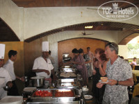 2-1. Питание. перед отъездом тоже отзывы почитали, не согласна я с народом. хорошая в отеле кухня. не надо ждать много - это индия. вообще не сравнивайте с турцией, тогда индия однозначно проиграет. все есть там: с утра традишанал Омлет!)), вкусный хлеб, соленое масло. ужин - рис в 279-ти вариациях)), много овощей, мяско иногда - вот к этому будьте готовы - индийцы веги страшные. даже сыра нет!)) По поводу остроты: те, кто не знают, что есть такое аджика и татарский кетчуп, посчитают все очч острым. я считаю - не остро или же терпимо, тк люблю аджичку. для самых-самых постняшек - просто спросите у персонала - хот ор нот хот? они подскажут))