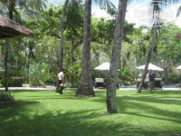 Сам по себе отель - утопает в зелени, мне показался очень романтичным, спокойным, на протяжении всего отдыха играла типичная балийская музыка, но к ней так быстро привыкаешь, что по возвращению в Москву ее не хватает.
