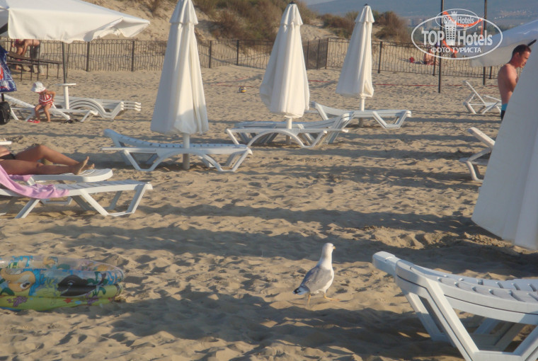 Персонал очень приветливый, внимательный, территория облогорожена и очень чистая, охраняется. Пляж огорожен, тоже чисто, ухоженно. Чайки гордо бродят, выпрашивая хавчик без страха и весьма нагло))