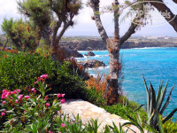 Отель имеет большую живописную территорию и соседствует с отелем МАРИНА. Можно ходить и тусоваться на обеих территориях. Кругом очень зелено и рельефно. Несколько бассейнов, в основном с морской водой. У главного бассейна народу как обычно много, но места есть всегда. У моря есть 3 лагуны, но находиться в них - платно. Кажется 2евро/день на двоих (зонтик+2 лежака), но это до 3-х часов. Потом бесплатно. Но у моря лежать не удобно. Там нет ни ресторана, ни бара, туалет и душ не очень близко. Поэтому мы загорали у бассейнов. Территория большая, очень красивая. Есть где устроить фотосессию и не одну ))