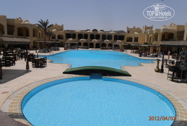 Были в этом отеле с 29.03 по 08.04.2012г. Обшее впечатление хорошее. По приезду заселили сразу,на ресепшене араб просил бакшиш, говорил *самий-самий хорошай номер*-дали ему 2$. Номер двухкомнатный--спальня(2кровати,2тумбочки,трюмо,шкаф-купе) и гостинная(диван, 2кресла,журн. столик,бол.стол ТВ, холодильник и типа кухонного уголка) есть еще лоджия размером ~3*4,короче места ВАГОН.... Мебель в номере конечно старенькая, но вполне крепкая и удобная, в номере чисто, в туалете тоже все в ажуре-гель, мыло, бумага и т.п. Мы приехали рано,отель был еще пустой, погуляли по отелю заходили в другие номера- они в принципе все одинаковые. Вся ЖИЗНЬ проходит в отеле через дорогу PALMA 4*. Ресторан-нормально на уровне 4-ки, голодными не ходили- были и кура. и мясо. и рыба, салаты,гарниры,выпечка,сладости. Сразу предупреждаю местный алкоголь-ггг. кроме пива и виски.Пляж хороший, каждое утро на нем прибирали мусор и медуз,если пройти подальше к 5-ке будет риф не большой , но посмотреть можно и кораллы и рыбок,так что берите маски ,а можно купить рядом в магазине 5 долларов.В город ездили на ихних автобусах 1 фунт с пассажира,ходили гулять на набережную,вечером там особенно красиво, в кафе FRIDENS подают очень вкусный свежий сок (манго,гуава ,апельсин,клубника) и бесплатный Wi-Fi сколько хочешь.Экскурсии покупали на улице в агентствах ,дешевле чем у гидов в отеле на 20-30% .