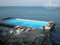 Бассейн вдается прямо в море т.е. можно перелезть через бортик и купаться в море, либо пройти влево от отеля по берегу метров 100 и купаться на песчаном пляже. Бассейн с морской водой! Территория отеля вся в цветах, вечером красиво подсвечивается огоньками, играет приятная музыка.