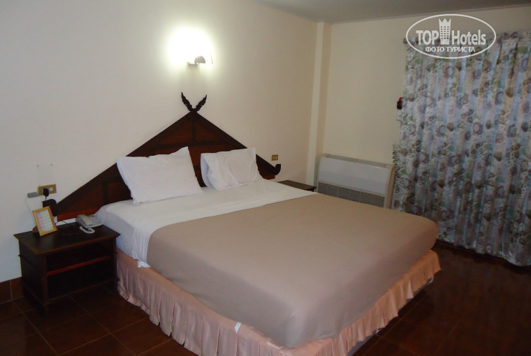Был с девушкой в этом отеле в апреле. Отель понравился. Недорогой хороший отель. Он состоит из двух корпусов 2-х и 3-х этажных, а также есть и несколько бунгало. По сравнению с другими отелями, очень маленький, в этом его плюс. Стандартный номер средних размеров, для двоих человек вполне достаточно, обычный набор мебели, ничего лишнего, минибар платный (цены естественно выше чем в магазине), без платно только не газированная вода, в день, по-моему, по маленькой бутылке на человека. Фена, утюга нет. Сейф на ресепшене работает с 8.00 до 20.00. Вам дают конверт, куда вы складываете фамильные ценности, золото, бриллианты, лишнюю валюту, фото и видео технику, паспорта и т.д. этот конверт помещают в сейф и закрывают на 2 ключа, один из которых отдают вам. Чтобы не сдавать в сейф цепи и других драгоценные украшения оставляйте их дома, в Таиланде их очень легко и быстро срывают.