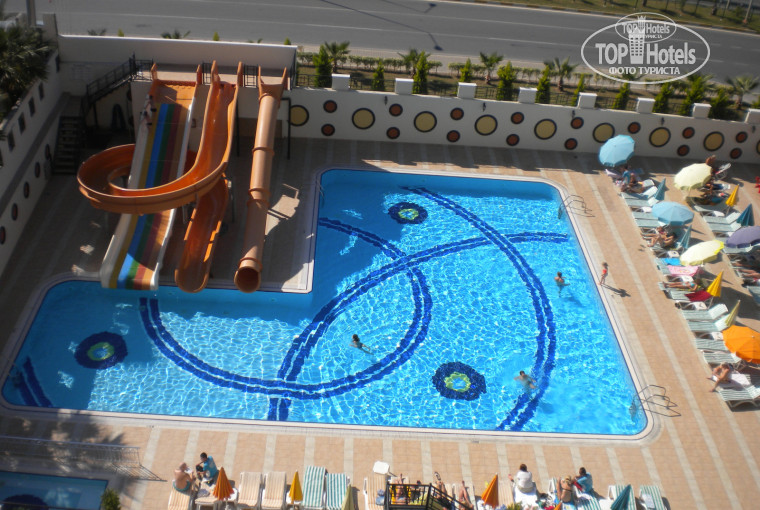 Хороший бассейн с горками, бар.