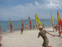 2. Пляж: песчаный 150-200 метров. Заход в море плавный. Лежаки, полотенца беплатно и много. Виндсерферы учатся рядом - смешные падающие человечки. Сама 3 дня серфингировала - смеяться на себя было некогда: то с головой под водой, то на доске зубами в парус.