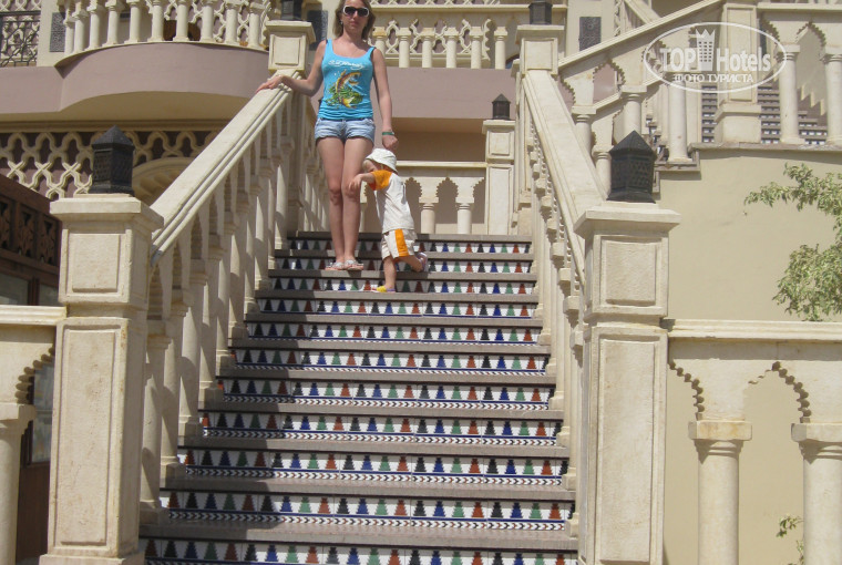 1 - территория. в общем и целом все красиво. шикарный большой бассейн, красивая архитектура. а теперь минусы - очень маленький пляж для двух отелей. приходилось занимать лежаки в 6 утра. не очень хорошее море - грязно и риф фактически отсутствует, мало рыбок. плохо ухаживают за растениями ( мы имели удовольствие лицезреть море завядших цветов). главный минус - на ресепшн ведет очень крутая лестница и других вариантов туда подняться нет, а ходить приходится часто. так вот - если у вас есть маленький ребенок и коляска, то либо начинайте заранее качать мышцы, либо берите с собой сильного мужчину, ибо вам придется переть коляску на себе. у меня как раз сыну 1.5 года и я на своей шкуре ощутила это неземное удовольствие ( постараюсь выложить фотку, т.к. описать все это словами тяжело).