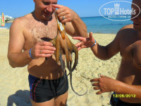 Море в наше посещение было еще конечно не очень теплое, но мы купались, а вот солнце шпарило уже очень хорошо, прилетели загорелые))) Пляж большой, море чистое, песочек, малюсенькие рыбки плавают, крабиков иногда волной приносит. В последний день был шторм, накачались на волнах, зато вода была теплая)))