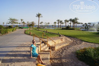 Добрый день. Первый раз были в Египте, хотели просто отдохнуть от всего, провести время на пляже, загорать и купаться. В связи с этим мы и решили выбрать именно город Таба. Так же мы хотели посетить Израиль и Иорданию, не получилось к сожалению, но ничего страшного. Отель нам понравился! Территория не очень большая, но зато очень красивый ландшафтный дизайн, много зелени, деревьев цветущих, прудики, фонтан, много красивых декоративных мостиков. Номер нам достался очень хороший. Мы заказывали стандартный номер, то есть с двумя раздельными кроватями, но нам повезло, так как таких номеров не было и нас поселили в семейный номер (так кажется называется) с одной огромной кроватью. Мы кстати по прочитаному здесь совету, положили 20 долларов в паспорт когда оформлялись, но их не взяли, но всё равно поселили в хороший номер с отличным видом на горы. Мы хотели с видом на море и бассейн, но потом поняли, что это не очень хорошая идея, так как с утра до вечера у бассейна кричат люди и дети, музыка и тд, а у нас тишина и покой, только чудный вид на горы. Сам номер просторный, со всем необходимым, чистый и аккуратный. Убирали каждый день (влажная уборка), полотенца меняли тоже, бельё меняли раз в 2 дня, уборкой номера мы остались полностью довольны, и кстати мы оставляли по 1 доллару на тумбочке, может это тоже сказалось на качестве. Кто-то пишет про то, что полотенца не меняют и бельё - это не правда. Персонал приветливый, многие говорят по-русски, в основном это молодые люди, есть несколько девушек. Обслуживание тоже нормальное, наслушавшись от друзей и родных про арабов, мы ожидали худшего, а нам наоборот очень понравились арабы, все милые и вежливые. Так же на территории есть два открытых и один крытый бассейн. Мы купались в открытом, большом бассейне с баром и в море, в закрытом не купались. Море было холодным и там вечно кто-то кусался и жалился, покупались там пару раз и перестали, так как все отдыхающие кто купался, были покусаны непонятно кем и ходили все в пятнах и ожогах. Нам сказали, что время такое неудачное, что водоросли какие-то приплывают и жалят. Купались в основном в бассейне, он большой, чистый с разной глубиной, с джакузи и баром. Кормили нормально, чего то удивительного и безумно вкусного не было. Блюд много, всегда шведский стол, правда фрукто практически не было, только в украшении для тортов и выпечки, а так были финики невкусные, груши или что-то очень на них похожее, и бананы. Много сдобной выпечки, вкусно, но слоёное тесто с привкусом странным. И ещё большой минус, то ли от воды, то ли от еды своеобразной, у нас болели животы. Весь отпуск мы мучались от этого, слава Богу, что не так сильно болели, но приятного мало. Может это мы такие неженки оказались, но всё равно советую брать с собой побольше лекарств от расстройства желудка, диореи и тд. Анимация и развлечения всякие, типа дискотек, нас не волновали, но всё же пару раз мы поиграли на пляже в камушки (бросать камень ближе с основному камню), кстати интересно, и в водное поло в бассейне. Один аниматор говорил хорошо по-русски, постоянно звали куда-то, то танцы, то волейбол, то ещё что-то, так что анимация нормальная. Но всё равно учтите, что если едете тусить и танцевать ночами, то Таба и Мёвенпик - не для вас! Персонал отеля хороший, а вот те кто ходит вечно по территории и предлагает свои эккурсии, нас порядк