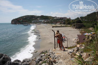 если пойти по пляжу в другую сторону, туда где пляж паша бей,идите дальше по пляжу и пройдете по берегу уже не спеском а плитами, там и красиво и народу нет. в конце пляжа кафешка, там предлагают выпить кофейку. но мы не заходили, времени не было. возле этой кафешки небольшая скала с заржавевшей лестницей, не пугайтесь и заберитесь, там тоже красивый вид!