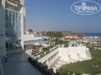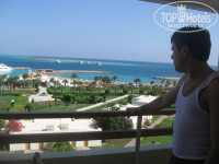 Итак, прилетели мы с отель где- то в 23.00. Заселили нас в течение 10 минут! Мы заполнили какую- то анкетку и тут же получили ключ от номера 312. Я уж было начала готовить денежку, чтобы дали этаж повыше, но сначала решила зайти туда, куда дали ключ :) Вид фантастический! Самый центр отеля, вид на все стороны: и на море, и на бассейны..