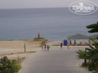 Пляж находится в трех минутах ходьбы от отеля, нет никаких автомагистралей. На пляже бесплатно предоставляются зонтики, шезлонги, матрасы. Сам пляж – большие камни, вход в море только с пирса, но если пройти дальше в сторону горы, будет песок, а если пройти за гору, можно покупаться в бухточке. На пляже работает бар, где можно пить все безалкогольные напитки, также каждый день приходила женщина, которая стряпала лепешки с сыром или картошкой( очень вкусно) . За баром на пляже следит дружелюбный и веселый турок Ибо, который пытается выучить русский язык, и общается со всеми туристами.