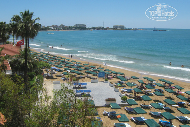 Ну ладно, хватит о грустном, теперь о прекрасном))))! Отель действительно замечательный, ухоженная, зеленая, довольно большая для этого региона, территория, шикарный пляж, отличный сервис (вроде бы 3, а на 5+!!!!!), про питание вообще молчу, давно так не объедались)))). При выборе отеля очень помогли отзывы, на 100% правдивые. Не знаю как некоторые)), а мы в душевую кабинку вполне вмещались)))!! Про бельевую веревку тоже вычитали, так что взяли и нет проблем! Что русских заселяют на первый тоже правда, т.к. немцы ездят в этот отель по 2 раза в год их турфирмы сразу бронируют расселение на верхних этажах. Но с этим у нас проблем не было (30$ на ресепшн и Вы на 3 эт.)))!!). Расположение очень удобное, отель самим корпусом и зеленью закрыт от дороги (шум не мешал, только в первый день отметили, а потом забыли)и других отелей, рядом поселок и дорога во все направления.