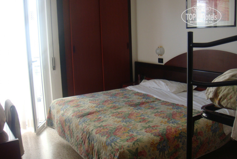 Номер нам понравился, небольшой, очень милый, чистый, только что отремонтированный. Вид из номера №106 на глухую стену соседнего отеля, немножко видно море. Есть еще виды на бассейн и на улочку Via Viareggio. Сантехника новая, все работало. Фен есть, работает нормально. Телевизор есть, но исключительно с итальянскими каналами. Убирались ежедневно, постельное белье за неделю поменяли наверное пять раз, мы сами удивились, полотенца меняли по необходимости.