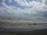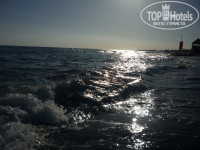 Очень замечательно что он рядом, никуда не нужно ехать или долго идти. Пляж песочный, ближе к морю мелкая галька. Босиком по гальке больно ходить :( Вход в море плохой. Дно - то булыжники то песок.. Нужна специальная обувь..и сильные волны, на которых все визжат и плавают:))))Шезлонгов хватает, полотенца бесплатные. Даже в бассейне не пришлось купаться. Кстати есть работающие по графику детские горки, в которых купались 100 килограммовые дяди и есть мелкий бассейн.