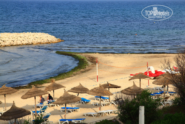 Отель достаточно большой,зелёный.Но вот пляж... За две недели отдыха,ни разу не окунулись в море.Кому скажи,не поверят.Причина-горы водорослей,как на пляже,так и в море.Их сгребали,но с присущим арабским "трудолюбием".