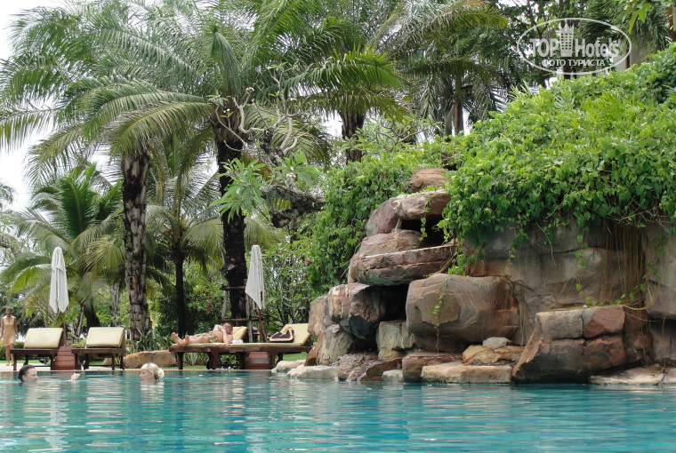Территория отеля уютная, много зелени, три бассейна (+ один детский) с теплейшей морской водой. Плавать в бассейнах можно до позднего вечера. Пляж широкий, очень чистый, кроме зонтиков – еще и пальмы. Но море…, конечно несравнимо чище, чем в других районах Паттайи, но купаться не очень приятно, вода мутноватая, но не от грязи, а скорее, от какой-то песочной взвеси. Поэтому купались все время в бассейнах – вода морская, но прозрачная, бассейны чистят через день по ночам под утро.