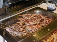 На завтрак очень вкусные густые как сметана йогурты с фруктами,выпечка,яичница,омлет,бекон и т.д. На обед-салаты,мясо,рыба,шашлыки,пицца,морепродукты,разнообразие сыров и колбасы,паста,картофель,суп,фрикадельки и многое другое. Мы посчитали и изумились,что нам давали 7 видов фруктов: яблоки,апельсины,груши,киви,нектарины,арбузы,дыни.На ужин то же самое,но вместо говядины,например,выступает свинина,вместо пасты-картофель фри. Короче,еду по вкусу найдете 100 %. Также много сухофруктов и очень вкусные торты,пирожные и мороженое. Единственное,что не понравилось-это то,что все соки и алкоголь сильно разбавлены!!