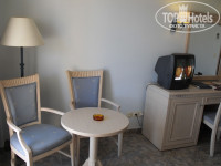 Номер просторный, а приятных голубых тонах. Для нашей дочери (11 лет) была поставлена раскладная кровать с отличным матрасом. Минибар пополняется бесплатно раз в два дня. Сейф в номере платный (30 евро за 12 дней). Уборка в номере отличная каждый день независимо от того оставляешь пару евро или нет. Кондиционер работал хорошо. Телевизор небольшой, но для нас это было не принципиально. Русскоязычный канал один - "РТР Планета".