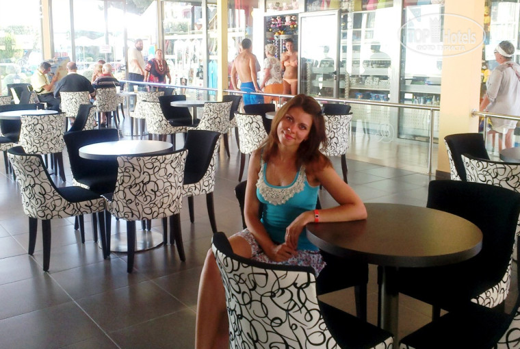 Встретили, разместили - все ок! Претензий к Библио-Глобусу и Белион-Туру нет никаких. Холл в отеле просторный, красивый и уютный! В бело-черно-красных тонах! Территория отеля довольна большая, несколько корпусов. Вида на море нет ни в каких номерах. Бассейн довольно просторный, много места, где можно разместиться на территории отеля и позагорать на лежаках. Туристы в отеле - в основном, русские, поляки, немцы... Отдыхали - семьями, друзьями, парами. Для детей, конечно, основное занятие в отеле - это детский бассейн. Есть также качели. Наш гид - Вера помогала нам в любых вопросах, что-то советовала, хорошо рассказывала о преимуществах той, или иной экскурсии. И вообще она оказалась очень хорошим и душевным человеком. Побольше бы таких гидов, как Вы - Вера! И вообще, когда туристы выезжали, то и с другими гидами все тоже очень тепло прощались - уверенна, что ни у кого не возникало никаких претензий во время отдыха:)