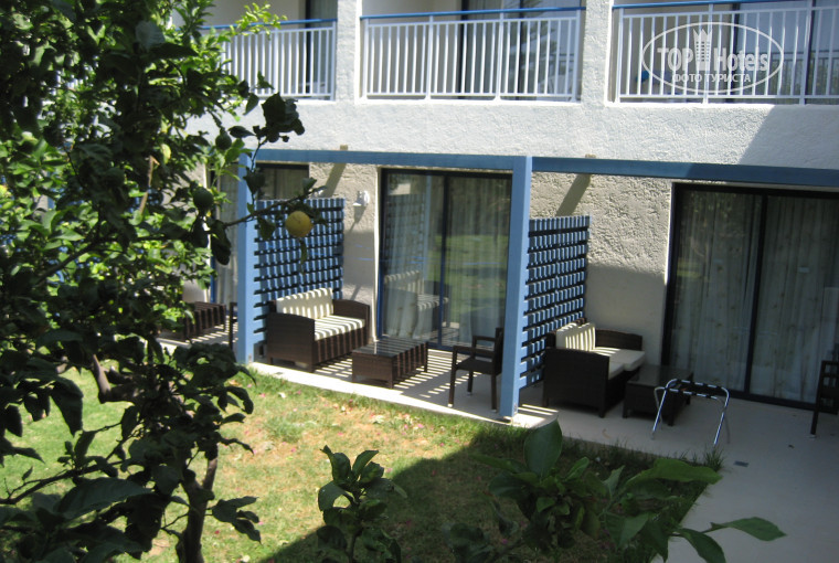 - Нас заселили в прекрасный номер (семейный на 1-ом этаже с выходом в сад с лимонами), фен, конечно, берите свой, кондишн работает при закрытой балконной двери нормально в детской, до нас доходило туго, но балкон с выходом к лимонам компенсировал всё, мы даже велики там ставили под дерево, вечером сидеть приятно и тихо, место совсем не проходное;