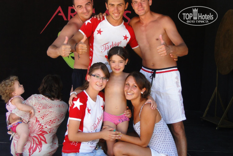 Для детей интересная программа. С утра до позднего вечера они будут под присмотром аниматоров с БОЛЬШОЙ БУКВЫ!!!! Самые обаятельные девочки Олечка и Гюрбет помогут малышам рисовать, строить, лепить, танцевать. А вечерняя детская анимация подарит море положительных эмоций!