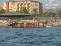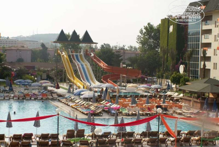 Итого за отель твердая 4. В плюсах номера, турецкая баня, анимация, море и горки, в минусах отсутствие места у бассейна, плохой вход в море. Территория отеля - посередине. Достаточно большая, достаточно зеленая.