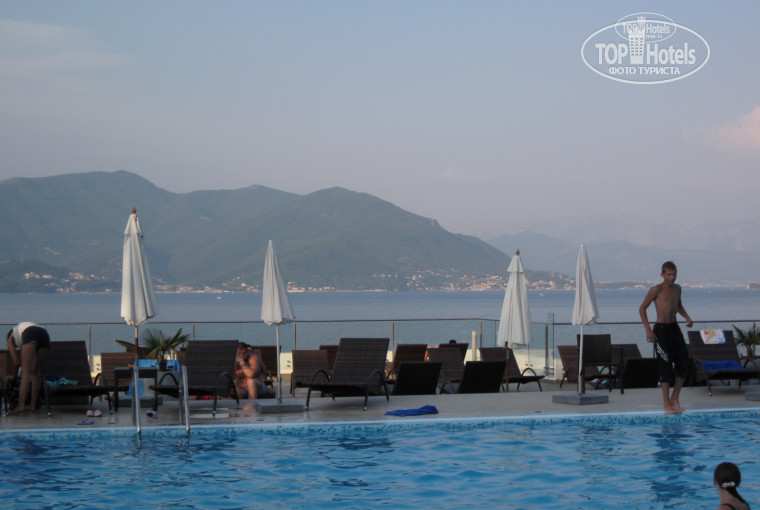 Преимущества отеля: 1) пляж - собственный, песок+мелкая галька, удобный вход в море для детей, бесплатные шезлонги и зонтики для постояльцев (для остальных 2 лежака+ зонт обойдутся в 14 евро), отсутствие дикарской практики "бронирования лежаков"; 2) красивые виды отовсюду - из номеров (все выходят на море), из ресторана, бассейна, бара; 3) недорогой трансфер на катере от отеля в город Герцег Нови к цивилизации (1 евро с носа), при стоимости такси 7-10 евро и примерно одинаковом времени в пути; 4) современный, хоть и простой, дизайн номеров, наличие в них всего минимально необходимого набора (говорю о номерах стандарт).