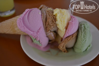 Вся еда разделена на 2 ну или даже 4 части по принцепу одна часть для не курящих другая соответственно…но разделения людей по этому принцепу я не заметила, еда есть как на улице так и в зале и столики тоже. И с лева и с права еда повторяется но не на ужин. На завтрак были фрукты, платный свеж.выж. сок, оладья, яичница, омлета, пельмени, сосиски, картофель фри, обалденный пирог с мясом(нац. Блюдо по ходу), каши, булки, выпечка (по сравнению с «фазэлисом» не такая разнообразная) попить их химич. Соки чай кофе газировка молоко,были хлопья варенья шоколад(типа нутэллы) ну и т.д. В общем всегда одно и тоже, но всё вкусно съедобно голодными не оставались)) Взяли полотенца и отправились на пляж, свободно всегда можно было занять хоть 5 лежаков на пляже не зонтики а тэнты(что очень для нас важно). Вход в море крупная галька и ходить было больно, но спасала дорожка из больших камней, которую любезно выложил один из туристов этого отеля для своих детей)))) Сходили на горки,хорошие, их 3, 1я для детей(мелкий бассейн) 2й для всех он нормальный, просто надо знать секрет катания на медленных горках:D и третья это конечно нечно, я скатилась 1 раз прилетела без купальника))Мужики, те кто покрупнее вылетали так, что всех окружающих и их камеры обдавало освежающем душем)) Подниматься не высока на 2ю 47 ступеней помойму(полезно кстати хоть какое-то движение). На обеде несколько видов мяса было но рыба всегда 1 только на гриле и до ужаса костлявая есть не смогли к сожалению. То что было на гриле очень даже вкусно кетчуп правда отсутствовал где-то в последние 2 дня нашего отдыха, но это ничего))) Фрукты были в основном зелён. абрикосы яблоки апельсины и т.д. Супы 2х видов кстати на завтраке один суп тоже был) Картошка несколько видов макарон рис вкуснейший как всегда в Турции. Единственный минус всей этой еды- это то что не хватало разнообразия, всё всегда почти было одинаково. А так вкусно и не травились ничем. Про ужин скажу только то что появлялась сначала клубника в очередь и «драку» потом черешня. Вино стояло на столах и вода. А по еде появлялись побольше десертов и еды, а так тоже самое всё)) Очень нравились нам лепёшки которые делали в баре около бассейна с мясом. В отеле 5 бассейнов один крытый, релакс, главный с горками. И главнй ещё переходит в полу олимпийский глубина 3 метра, ещё есть бассейн с волнами, который сделан по аналогу моря. Самый главный минус отеля это мраморные дарожки сколько раз я слышала это Шлёп! И 2 раза упала сама!А ещё они мокрые с утра это вообще убийство. Очень красивущая территория отеля, большая, зелёная, вдохновил водопадик. Минус Турции что там запретили Вконтакте и по это му я была оторвана от мира. Фотографы не так приставуче , но если просто зайдёш(а я просто зашла посмотреть их работы) запишут тебя везде куда только можно) На всякие шоу мы не ходили почти так что сказать ничего не могу, по территории ходят петухт курочки кошечки, наблюдали всем пляжем картину как кошка охотилась на пташку, но потом в самый ответственный момент мальчик спугнул птичку))Кормили рыбок с пирса, было здорово))В целом отдых удался, и я не понимаю почему пишут что РУССКИЙ отель плох контингентом, да конечно не все идеально, но из этого тоже можно выловить плюс-например можно спойно знакомиться зная на 100% процентов что он русский и окр. Люди не будут смотреть на тебя как на идеотку, 