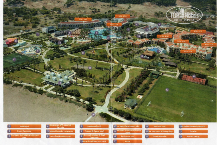 Очень красивая и зеленая, есть где погулять, но не скажешь что огромная, просто как-то все расположено продуманно. 5 бассейнов +один крытый. Самый большой с горками. Все горки работают с 10-30 - 12-30, с 15- 17. Вода в бассейне чистая, теплая. Самый теплый релакс. Детские горки, детский лягушатник с одной горкой. Ночью бассейны чистят пылесосом. Детская площадка. От комаров хоть и опрыскивают, но все равно есть , особенно в амфитеатре. Доча спала в коляске, погрызли всю.