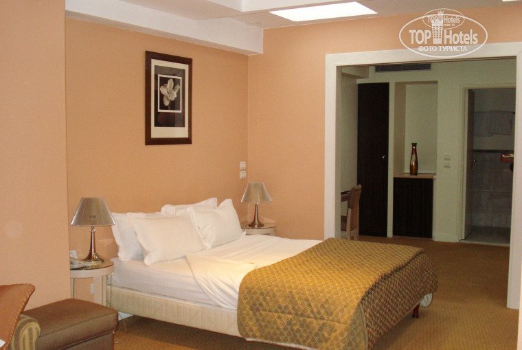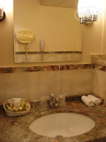 Наш номер был большой и состоял из двух жилых зон: в одной - кровать 2-спальная и еще диван с французской раскладушкой, во второй столик с зеркалом, обогреватель, холодильник с полным набором всех мини-напитков, в туалетной комнате имеются набор полотенец от мала до велика, гель, мыло, шампунь, кондиционер, лосьон для тела, шапочка для душа. Этот косметический набор ежедневно пополнялся, независимо от того, использовали мы предыдущий или нет. Выдаются также тапочки.