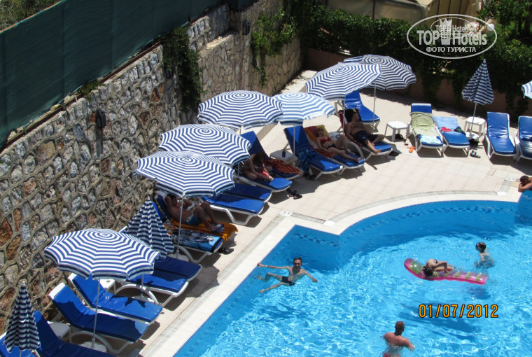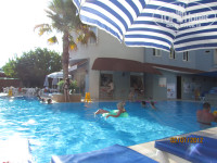 Отель очень хороший! Отдыхали с мужем с 1 по 13 июля 2012 г. В Турции первый раз. Персонал молодцы, работают быстро, аккуратно и ненавязчиво! Все очень опрятные и доброжелательные. Уборка номера каждый день, смена пастельного белья и полотенцев каждый день. Из простыни каждый день делают какие-либо фигуры (парусник, цветок и т.д.) (Без чаевых!) Готовят вкусно и разнообразно, голодным точно нельзя остаться. По русски говорят, но не все. Среди отдыхающих русских не много, в основном немцы, поляки, норвежцы, и в целом поселок в котором находится отель, русских не много. Но это не плохо. Экскурсии берите на улице, рекомендую брать у Лены с Катей (мама с дочкой, они сами из России), качество экскурсий отличное, никакого обмана не было, при покупке нескольких делают скидки. Рекомендую экскурсию "Джип сафари пять в одном" от фирмы Калибри, Весело, красиво, с присутствием адреналина! Не пожалеете! Так же очень впечатлили травентины, город Сиде, Мира, амфитеатр Аспендос. Вход в море неудачен для отдыха с маленькими детьми (до 3-ех лет). Все в воду спускаются в основном с пирса и дети и взрослые, вода чистейшая, а на самом пляже песок. В десяти минутах ходьбы от отеля есть дикий пляж, только там шезлонг с зонтом платный - три доллара. Красота неописуемая! Анимации заключается в том, что с вами проводятся конкурсы, когда каждый день, когда через день с 21 до 23, в принципе весело. Днем ничего нет, но нам с мужем они были вообще не нужны, мы приехали на море и посмотреть страну. В общем кто собирается в этот отель, не пожалеете! Отличного отдыха и настроения!!!