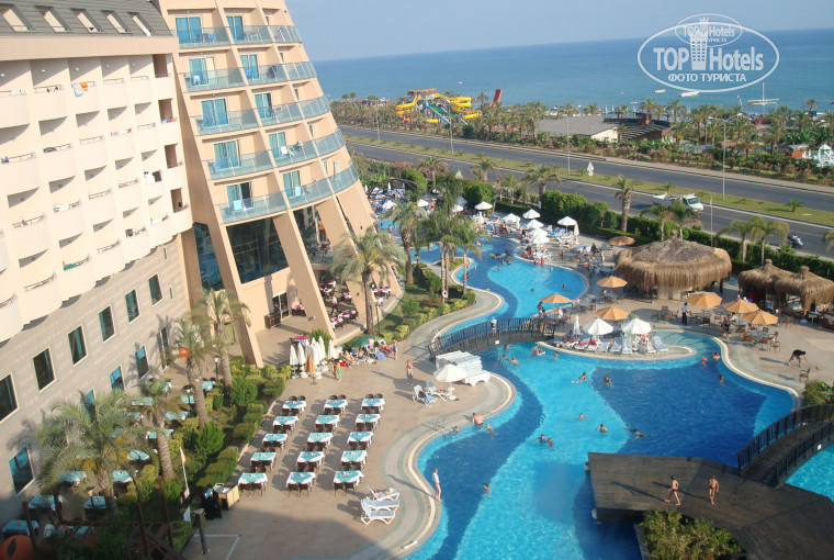НА самом деле отель очень клевый и здоровенный, АБСОЛЮТНО НЕ НАПРЯГАЕТ переход через дорогу к морю!!! С детьми ехать можно и нужно, а кто там писал про прыщи на ОПЕ, займитесь собой и ходите по чаще к косметологу и не жрите всякую х.ню! Но бывает всякое, были рядом с нами семья, у них ребенок заболел, вы поймите, все по разному переносят климат и водные процедуры! Сгоняйте обязательно в Хамам! Аниматоры тоже работают на все сто! Пляж так себе-галька, но мы нашли вход в море, где нет булыжников, но нас это не напрягало! Общались с одним из сотрудником отеля на ломанном англо-русском, сказал, что у хозяина отеля своя ферма и всегда свежее мясо! Но я нисколько не усомнился-еда, повторю, всегда свежая и очень вкусная! Про алкоголь писал... Обязательно возьмите в Дьютике кто что любит-лишним не будет! Кто пьет водку, берите с собой, но вроде водки можно 0.5 или 1 литр на чела брать за границу! Вечером попасть за стол, в сезон, на ужин это какой то ралли-кросс! Место найти очень сложно, но совет, мы познакомились с официантом турченком-чебуречком)))прозвали его Руся, похож на товарища)), прикормили его, давали ему каждый вечер по 3-5 баксов и стол всегда ждал нас с двумя уже налитыми бокалами вина.... Пришел с пляжа, вышел на балкон, смотришь-а столь уже накрыт и Рустик ходит караулит его))) Если нормально общаться с сотрудниками отеля получите взаимность! В номере убирали каждый день, полотенца менялись ежедневно!